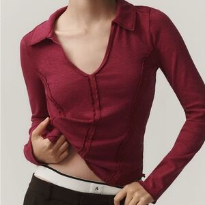 Pilcro Raspberry Stitched Long Sleeve Top