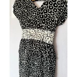 Vintage Jackie Bernard Dress Mid Length Floral Date Night Black White Womens 4