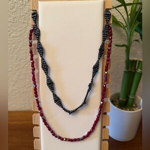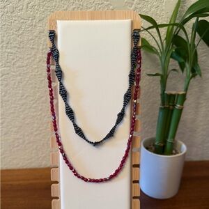 Set of 2 Handcrafted Beaded Necklaces - blue (14.5 in) & berry/maroon (16.5 in)