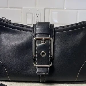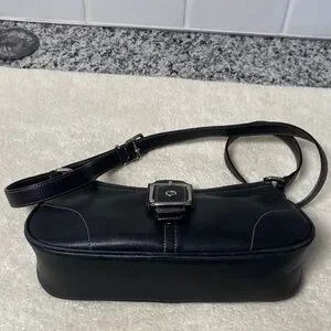 Coach Black Leather Shoulder Bag with Buckle