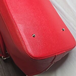 Large Furla Red Saffiano Leather Dome Satchel Handbag