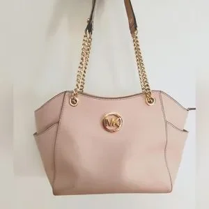 MICHAEL KORS Jet Set Travel Leather Ballet Blush LG Chain Shoulder Tote Bag