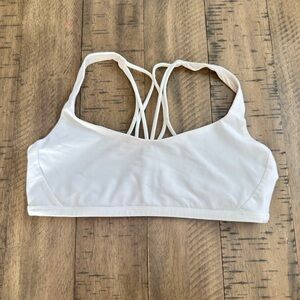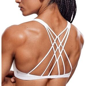 Experience comfort and style with this white strappy sports bra. Perfect for workouts or casual wear.