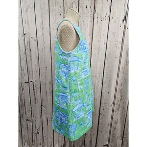Keywords: Lilly Pulitzer, towel dress, cover up, beachwear, resort wear, summer dress, girl's dress, turquoise, blue, beach scene, tropical print, poolside, vacation, lightweight