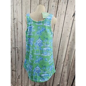 Susal Albright Towel Dress Green Blue Toile Coverup Terrycloth Pawleys Island NW