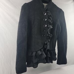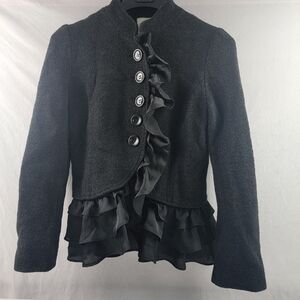 Fumblin' Foe wool blend military style removable ruffle blazer jacket Size Med