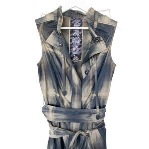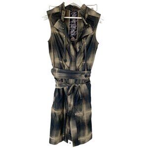 • Gold Olive Color Print/Sheen Construction/Belted/High Collar/Snap Closure Pockets