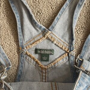 Wild Fable denim overalls with ripped knees. Overall in good condition but a few areas where the stitching is loose.