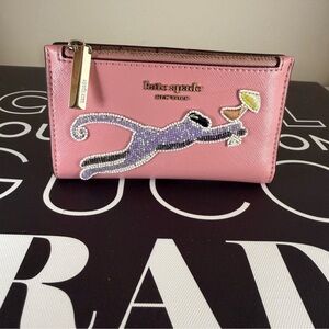 Kate Spade Monkeys Drinking Martinis Pink Set of 2 matching wallets large/small