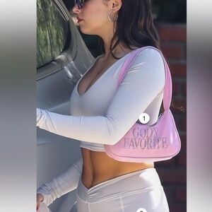 Stay cozy and on-trend in this premium active set from Frankies Bikinis. The Plié Long Sleeve Top features a flattering v-neckline, thumbhole cutouts, ruching at the wrists, and the “FB logo.”Designed in a relaxed yet supportive silhouette perfect for pilates, yoga, errands, or lounging.