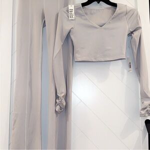NWT Frankie's Bikinis Workout Set Zippy Flare Leggings & Pliè top Icy grey Large