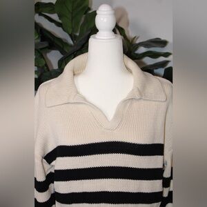 Joe's Black and Cream Striped Knit Collared Sweater - Size S