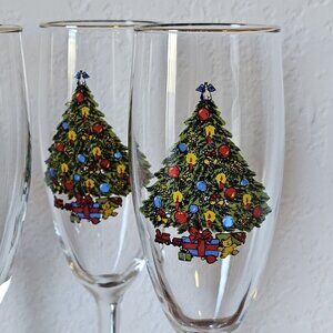 Christmas Treasure by Action Industries Champagne Flutes tree with Christmas presents and gold rim.