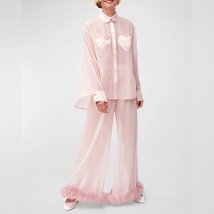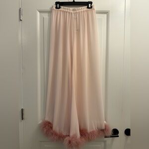 SLEEPER Fluffy You Sheer Pajama Pants With Turkey Feather Trim M