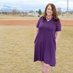 Zenana NWT Large Purple Choker Dress Plum Criss Cross Strappy Knee Length