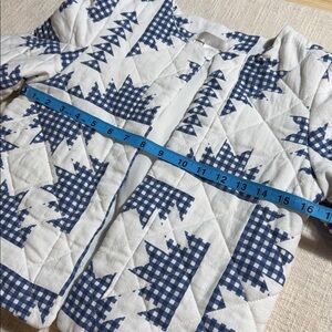 Channel that effortless cool-girl, cottage-core vibe with this stunning Caroline Constas quilted jacket. Featuring a navy + white gingham patchwork motif, this piece feels like a modern heirloom — part quilted artwork, part chic layering piece.