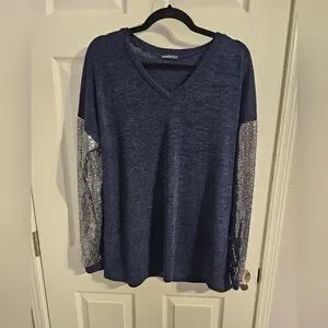 HEIMISH USA Blue Top with Silver Sequin Sleeves