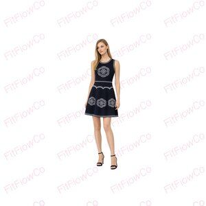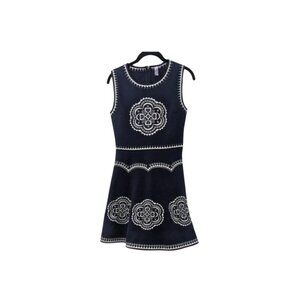 Navy Embroidered Fit & Flare Sleeveless Dress | Size S