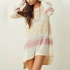 Free People Striped Distressed Knit Mini Dress | Coastal Grandmother Grunge Boho