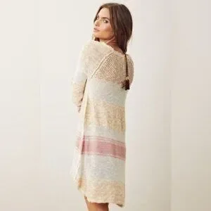 Bohemian, Boho Chic, Cottagecore, Fairycore, Soft Grunge, Academia, Neutral Aesthetic, Light Academia, Coastal Grandmother, Knitwear, Hygge, Cozycore, Cabincore, Distressed Knit, Striped Sweater Dress, Tunic Dress, Jumper Dress, Indie Aesthetic, Vintage Inspired, Romantic Grunge, Eclectic Style, Layering Piece, Transitional Style, Sustainable Fashion