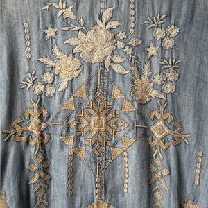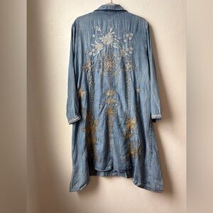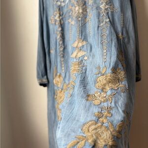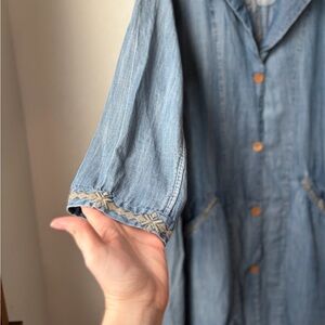 Kyla Seo Embroidered Chambray Laramie Jacket Dress Handmade India Boho Size L