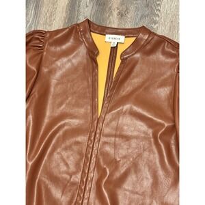 Bold and sophisticated, this cognac brown faux vegan leather top features statement puff sleeves for a modern, structured silhouette. Perfect for elevating both day and night looks.