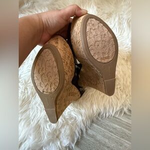 Step out in style with these chic black wedge sandals. Featuring a floral accent, these shoes are perfect for any occasion.