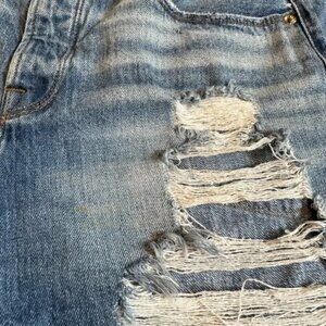 Good American Bombshell Jean Shorts Size 4/27 Blue 153 Button Fly Denim Frayed