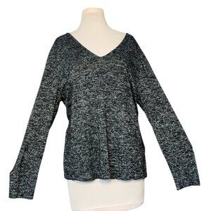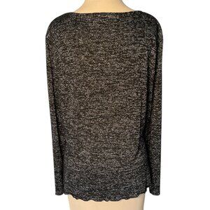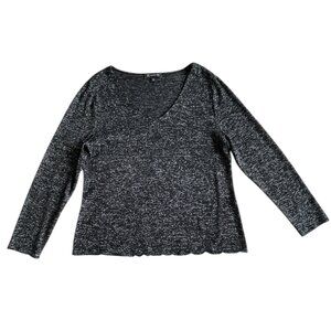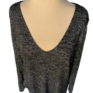 INC Women's Black with Silver Metallic LongSleeve V-Neck Top, Size XXL EUC