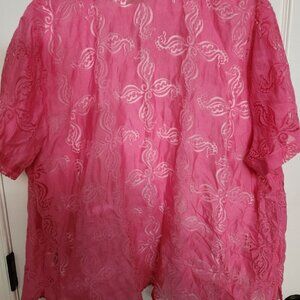 Alfred Dunner Lace Button Down Shirt Short Sleeve Top Neon Pink