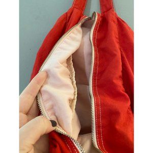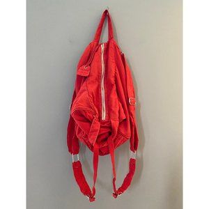 Red backpack with front logo pocket. Adjustable straps for comfort. Good used condition.