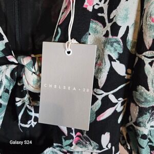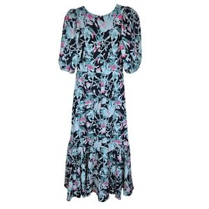 CHELSEA 28 Floral Puff Sleeve Tie Front Maxi Dress Black Pink Green XS