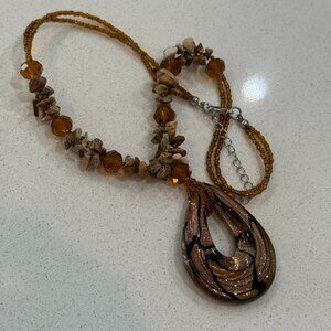 Unique Art Glass Pendant with Abstract Design and Metal Flake Sparkle