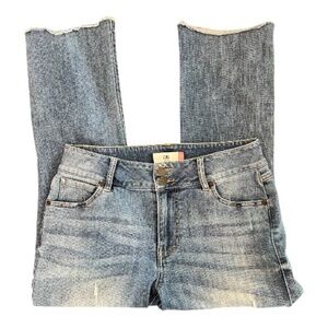 EUC Cabi hi-low crop lightly distressed blue jeans – size 10