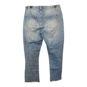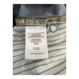 Excellent used condition Cabi women’s hi-low crop jeans in a classic blue wash with light distressing. Features a flattering slim fit with stretch, 5-pocket design, and zip-and-2-button closure. Perfect for casual outfits or pairing with sneakers and sandals.