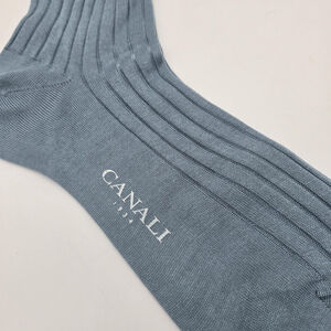 Canali Socks Mens Medium Light Blue Dress Ribbed 100% Cotton Crew Nordstrom