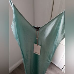 Brand new 100% Washable Silk Slip Dress from Quince in perfect condition. Retails at Quince for $90. Traditional retail cost is $228-$398. Color is Aqua Pearl Blue. Size is medium. Measurements are pit to pit 17 1/2 inches and stretched 18 inches. Shoulder to hem 47 1/2 inches with straps adjusted in the middle. The model is 5'7.
