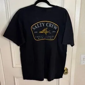 Salty Crew Black Short Sleeve Tee with Gold Emblem