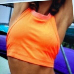 NWT Free People Movement Game Time Ribbed Crop in Neon Coral.