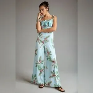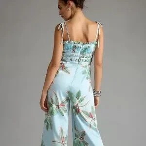 NWT Anthropologie Hutch Ruched Blue Floral Jumpsuit 10