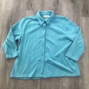 Elisabeth by Liz Claiborne Corduroy Long Sleeve Plus Size Light Blue Button Up Shirt. Size Plus Size Petite 2. No rips, tears or stains. Some of the buttons are broken, shown in photos. Pit-to-pit 24", Collar-to-Hem 26".