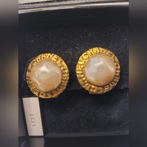 Chanel Gold Plated Pearl Vintage Clip On Earrings