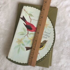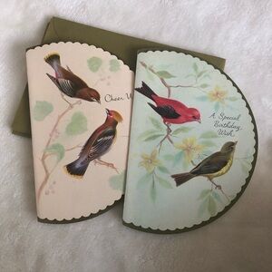 Lovely set of 6 vintage Olympicard greeting cards each featuring a beautifully illustrated bird on the front and a printed description of that specific bird on the back. Cards have charming scalloped edges and come with their matching envelopes. A perfect find for bird enthusiasts, collectors, or anyone who loves vintage stationery.