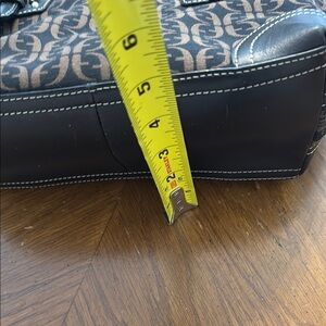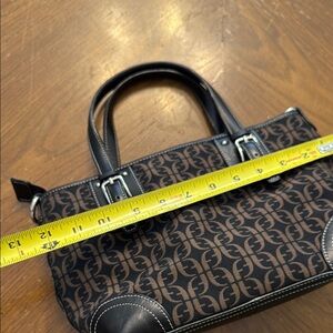 Fossil Brown Monogram Canvas & Black Leather Tote Bag Satchel w/ Stitch Detail
