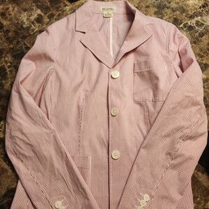 Elevate your style with this chic pink striped blazer from Michael Kors. Perfect for any occasion, this jacket adds a touch of elegance to your wardrobe.