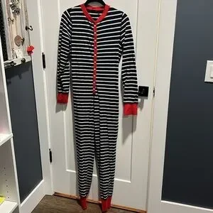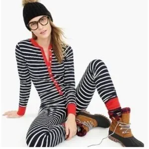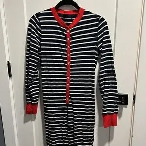 JCrew Unionsuit Onesie Pajamas Navy Stripe Red Jersey Cotton Loungewear