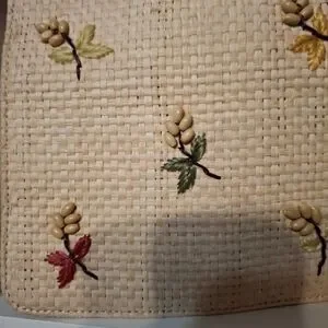 Fossil Woven Basket Crossbody Bag w/ Embroidered & Beaded Flowers - Cream