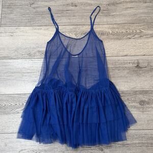Free People Intimately Push Send Mini Slip Tutu Tulle Dress Royal Blue Coquette
