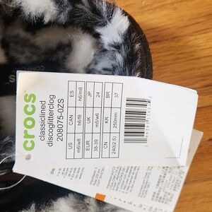 NWT Crocs Black and White Disco Glitter Fuzzy Clogs M6/W8