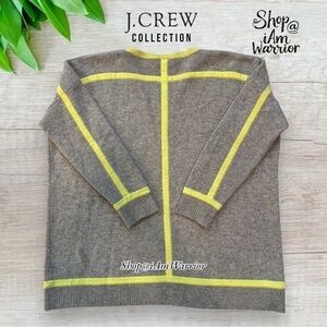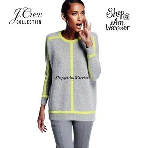 J.Crew Collection 100% soft gray cashmere crewneck sweater tipped in neon yellow is perfect with denim or over a trousers. Dropped shoulders, ribbed cuffs & waistband. EUC. Missing size & material tag, but is 100% cashmere and bust equates to an xl. See photos for measurements.